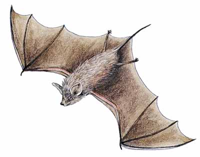 Small chocolate-brown bat with velvety fur and a tail extending beyond the wing membrane.