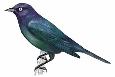 Plump bird with blue chest, black face and forward-curving plume (teardrop topknot).