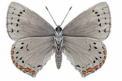 Note reddish spots along margin of hindwings. Upperwings are brownish.