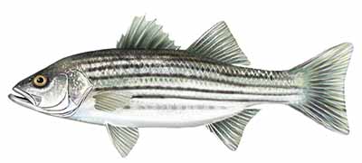 Grayish fish has 6-8 dark side stripes. First dorsal fin has 8-10 stiff spines.