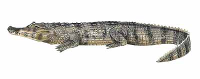 Gray-brown lizard has a prominently banded tail. Note folds of skin on throat. Underside of tail is white with black bands.